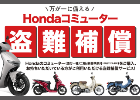 ホンダのコミューター(原付一種/二種/新基準原付 ※国内モデル限定)をご購入、お持ちいただいている方が利用できる盗難補償サービスです。盗難補償期間は1年間または2年間。またオプションでロードサービス・カギ穴いたずら補償もあります。詳細はお問合せください。